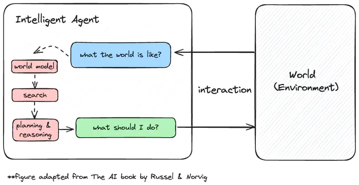An intelligent system should have at least two major components[^1]: (1) search, and (2) reasoning. Obviously, this is a very abstract yet classic AI formulation, and depending on what you have for options 1 and 2, you may get anything from a calculator to a chess program to a super-intelligent creature. But very crudely, the search component tries to look for solutions in the vast space of possible candidates, while the reasoning part tries to do the verification, planning, and formulation of an answer/action.